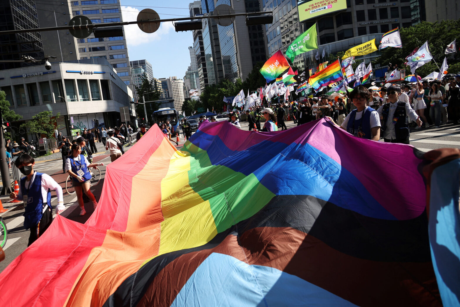 Participants parade with a huge rainbow flag during the Seoul Queer Culture Festival in Seoul, South Korea, June 1, 2024. REUTERS/Kim Hong-Ji